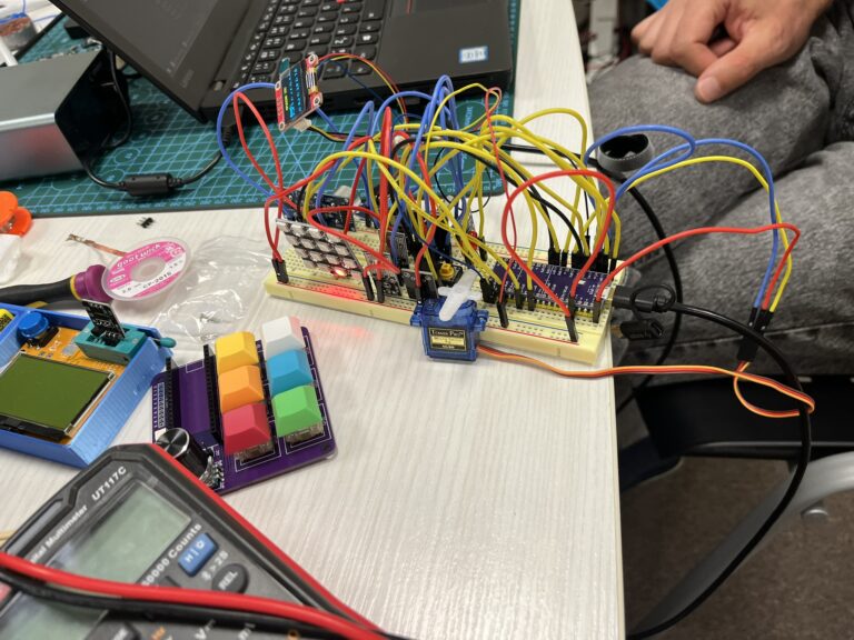 Tlačítka, LED, Neopixel (a LED pásky), motory a serva. Potenciometr a analog in obecně, rotační enkodér. I2C senzory, displaye.Praktický projekt