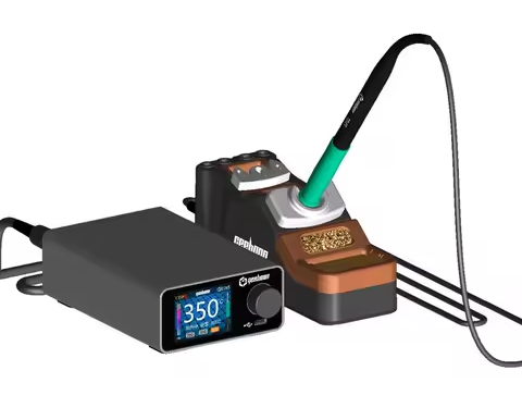 Na kurzu s horkým vzduchem sice nepracujeme, ale sám ho používám pro opravy, odpájení a pro zapájení malých SMD. Mám Fnirsi SAG-55 – hlavní výhodou je kompaktnost, ale nemá příliš intuitivní ovládání. Pokud bych neřešil prostor, tak by stejnou a možná i lepší službu odvedly základní modely YIHUA.